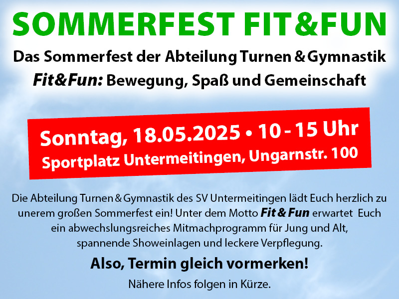 Am 19. Juli 2025 nahm die SV Untermeitingen mit zwei Mannschaften des Leistungsturnens am Gau-Mannschaftswettkampf im Gerätvierkampf in Mering teil. Die jungen Turnerinnen zeigten an Sprung, Barren, Balken und Boden nicht nur ihr Können, sondern auch großen Teamgeist und Einsatzfreude.